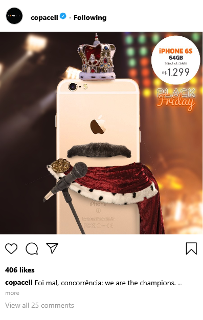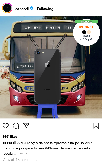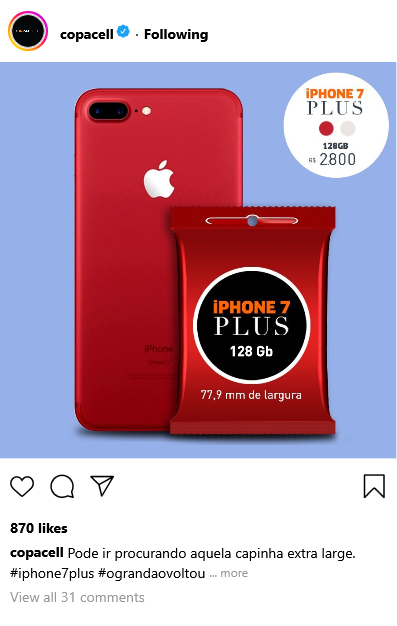 Mesmo as menores marcas podem conseguir grandes resultados se forem capazes de dialogar com seu público. A Copacell era uma pequena revenda de iPhones usados, que apostou na democratização de um objeto de desejo para chegar às massas. Através de posts irreverentes e de uma seleção criteriosa de microinfluenciadores, conseguimos transformar a marca em um perfil popular no Instagram, atraindo milhares de seguidores e compradores.